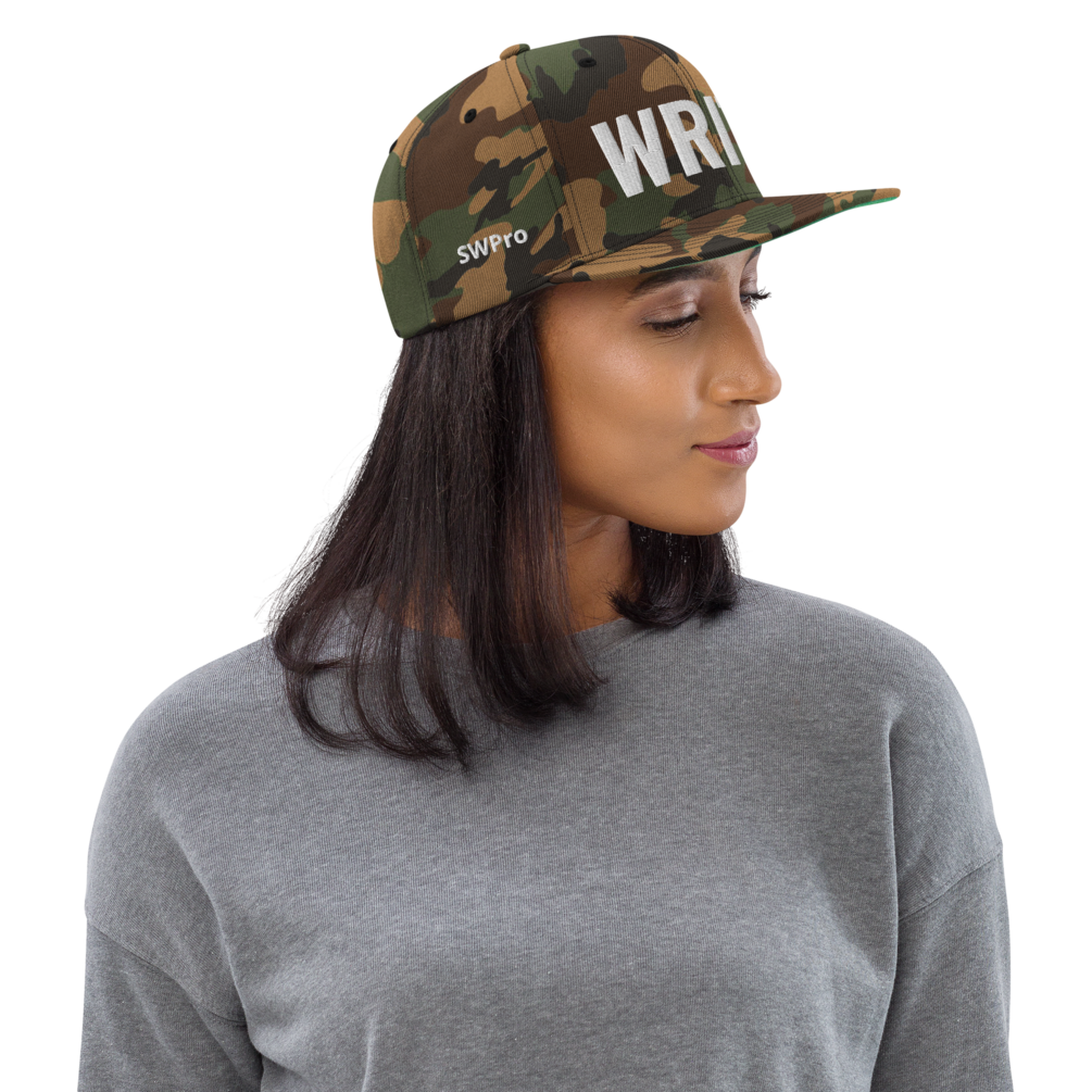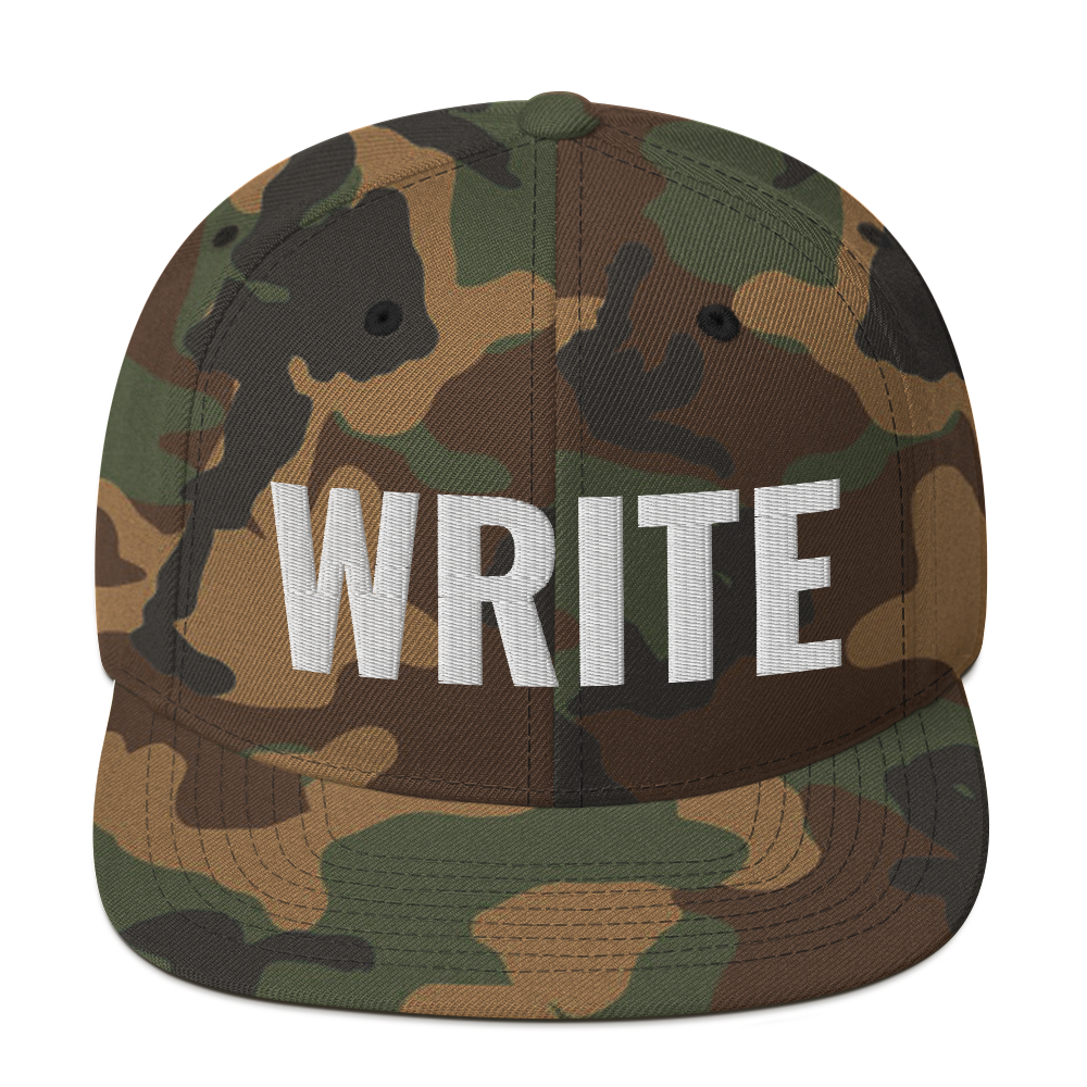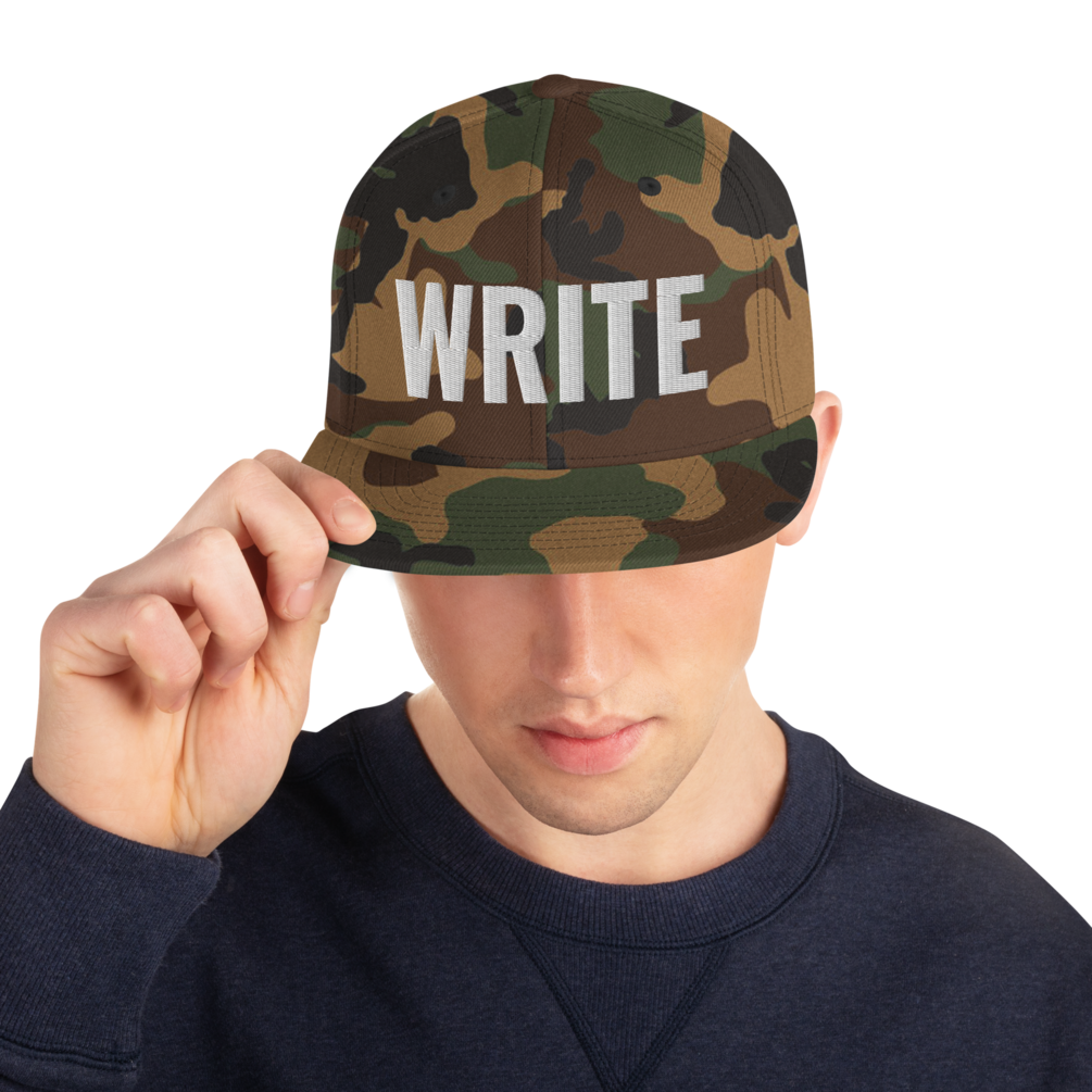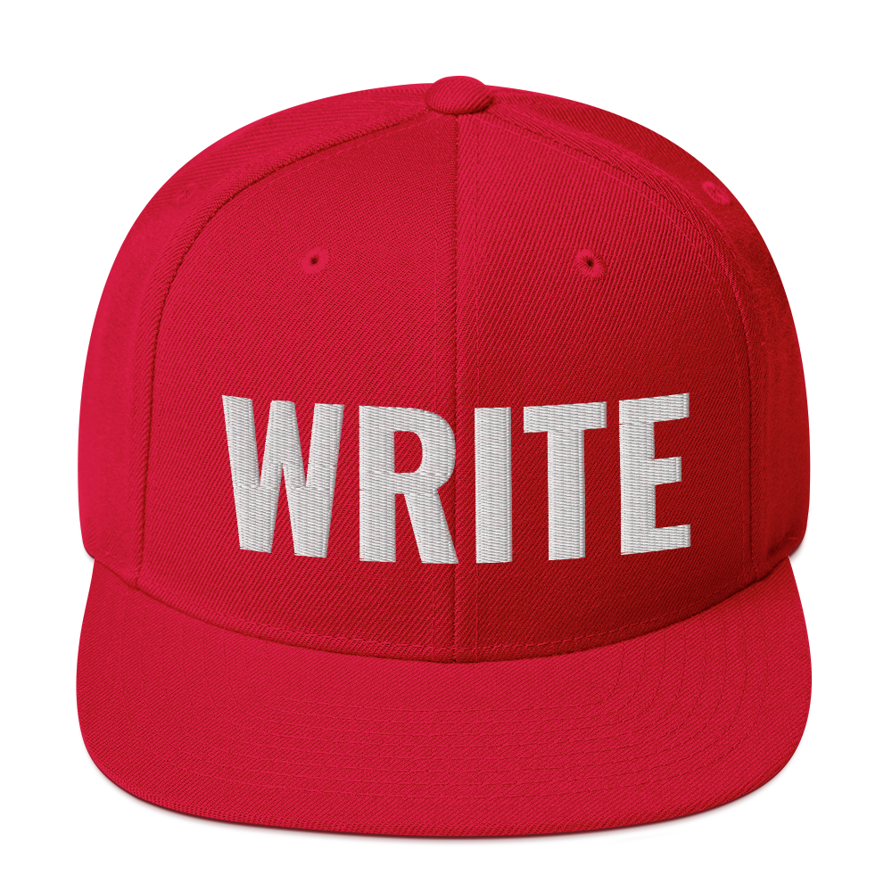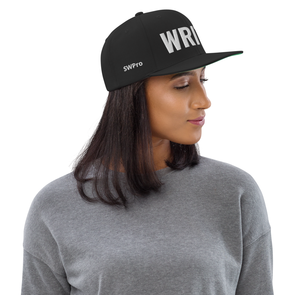 Classic "WRITE" embroidered snap-back hat lets the world know that YOU are a writer!